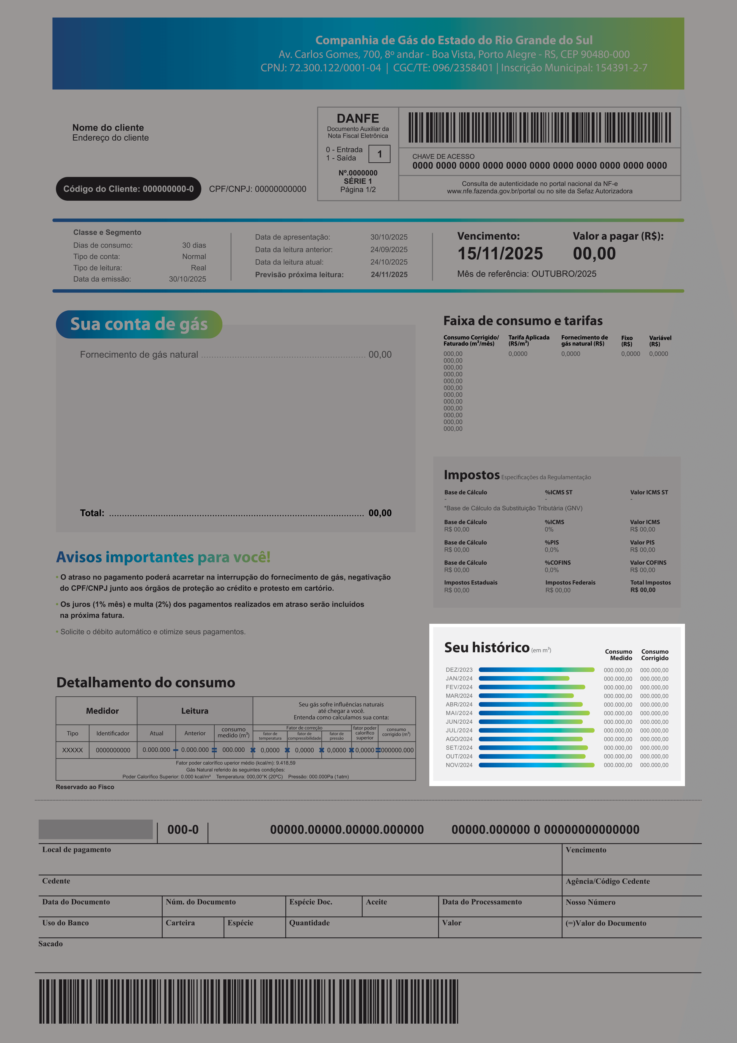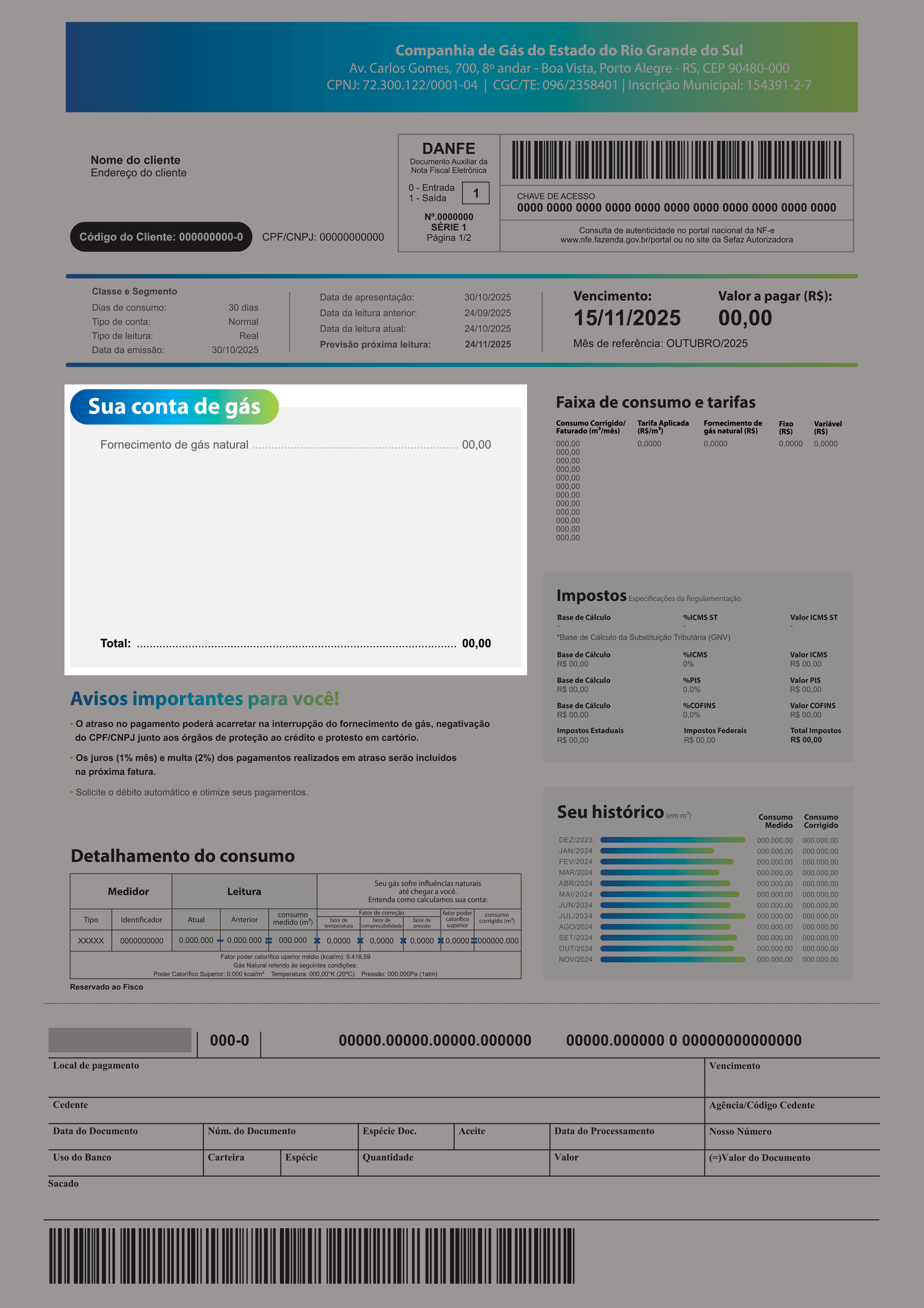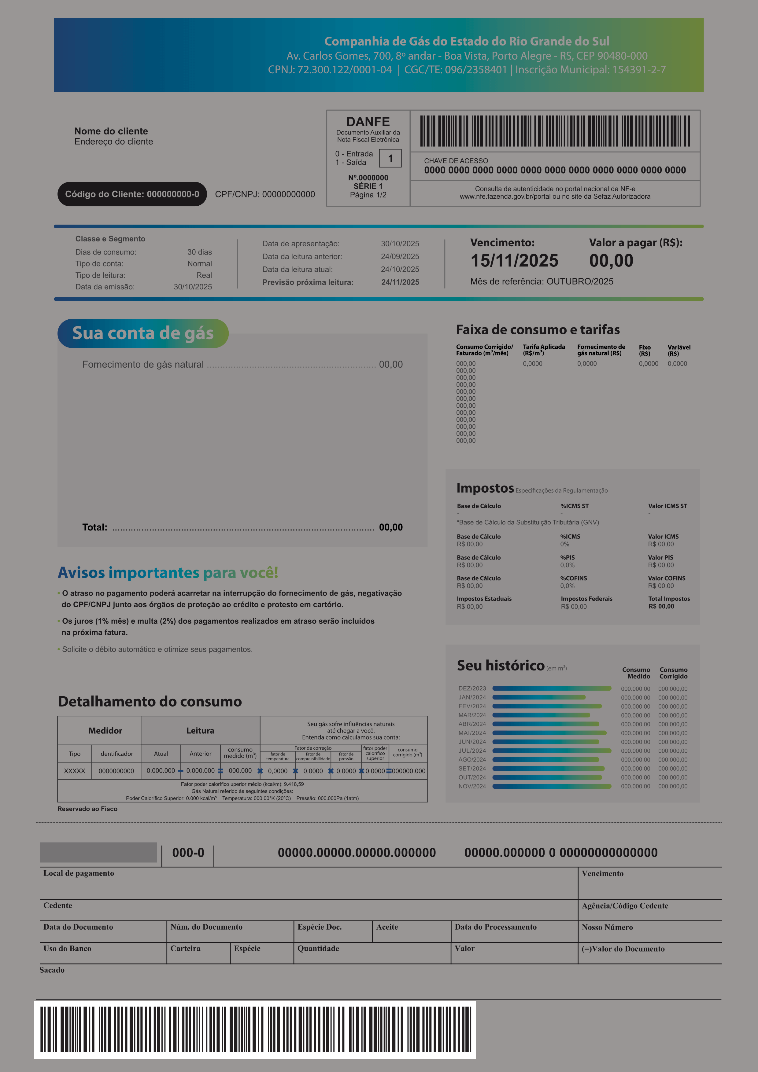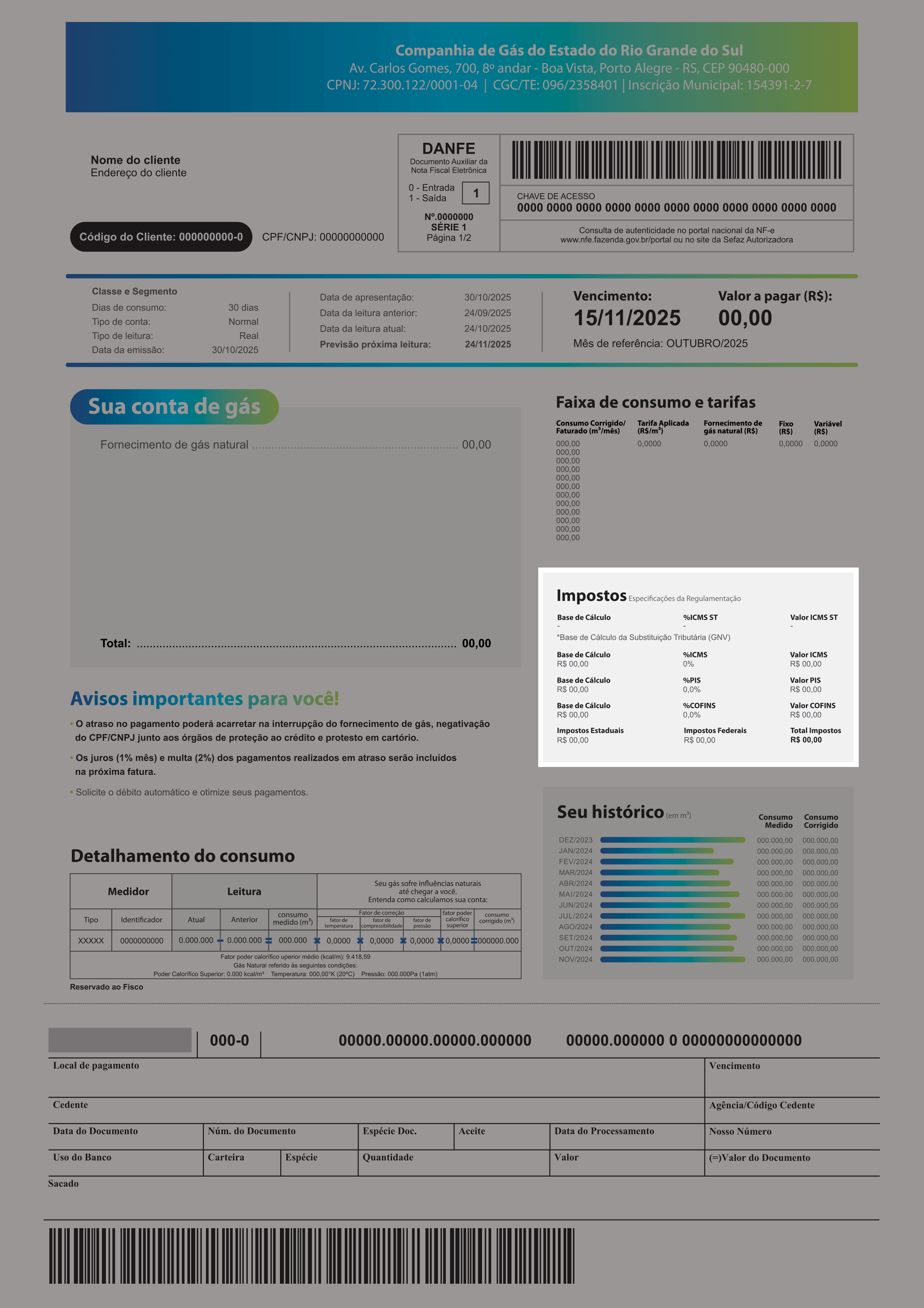é valor total a ser pago pelo cliente pelo gás consumido no mês.