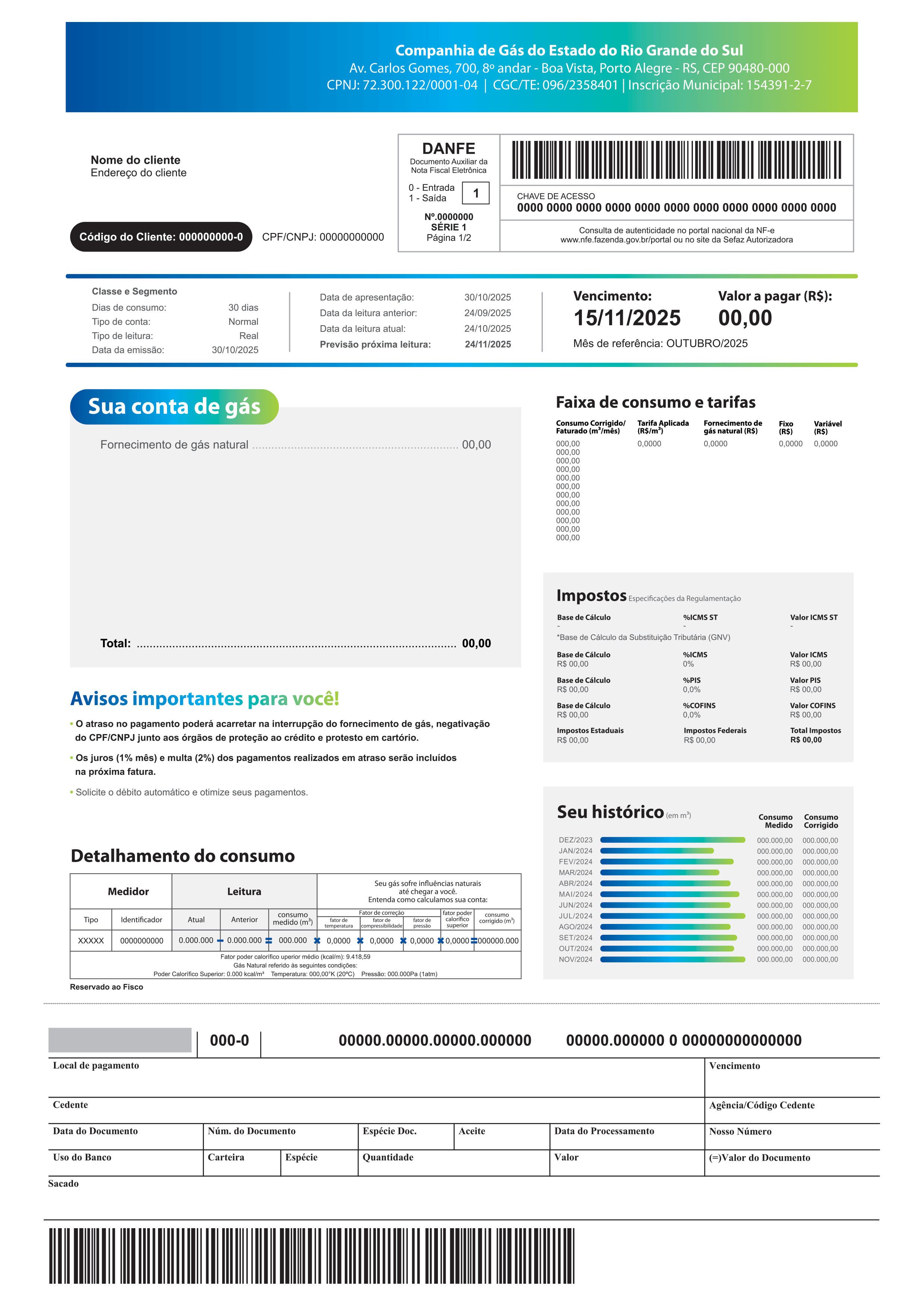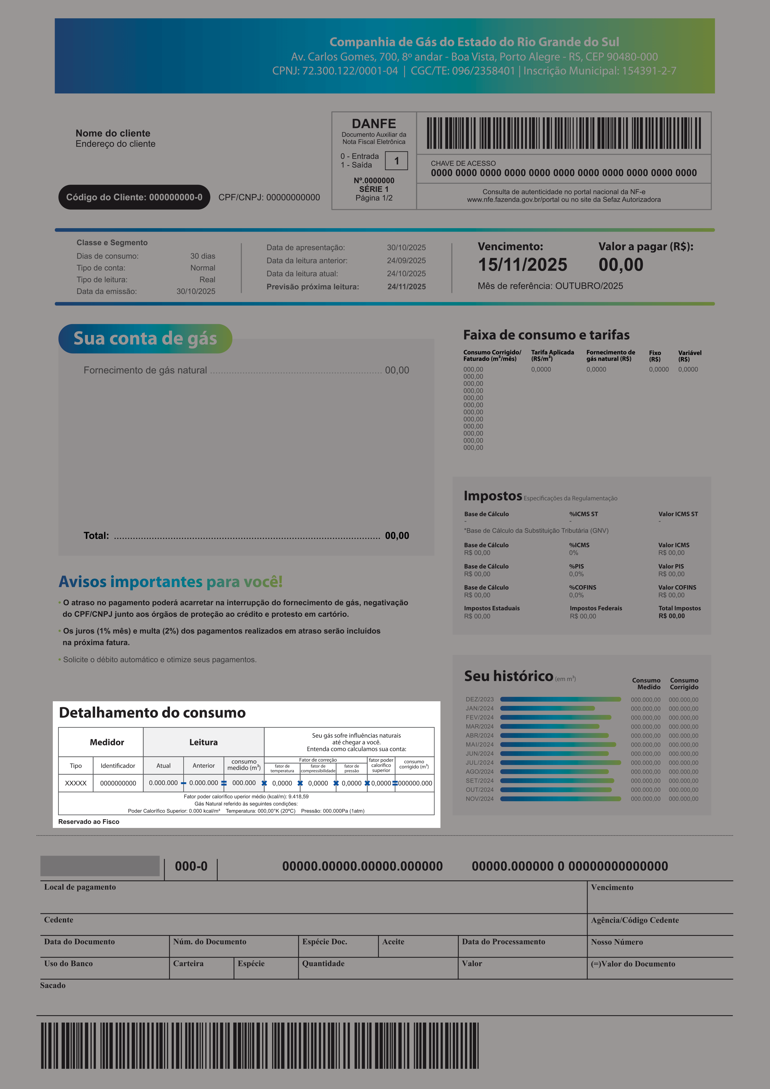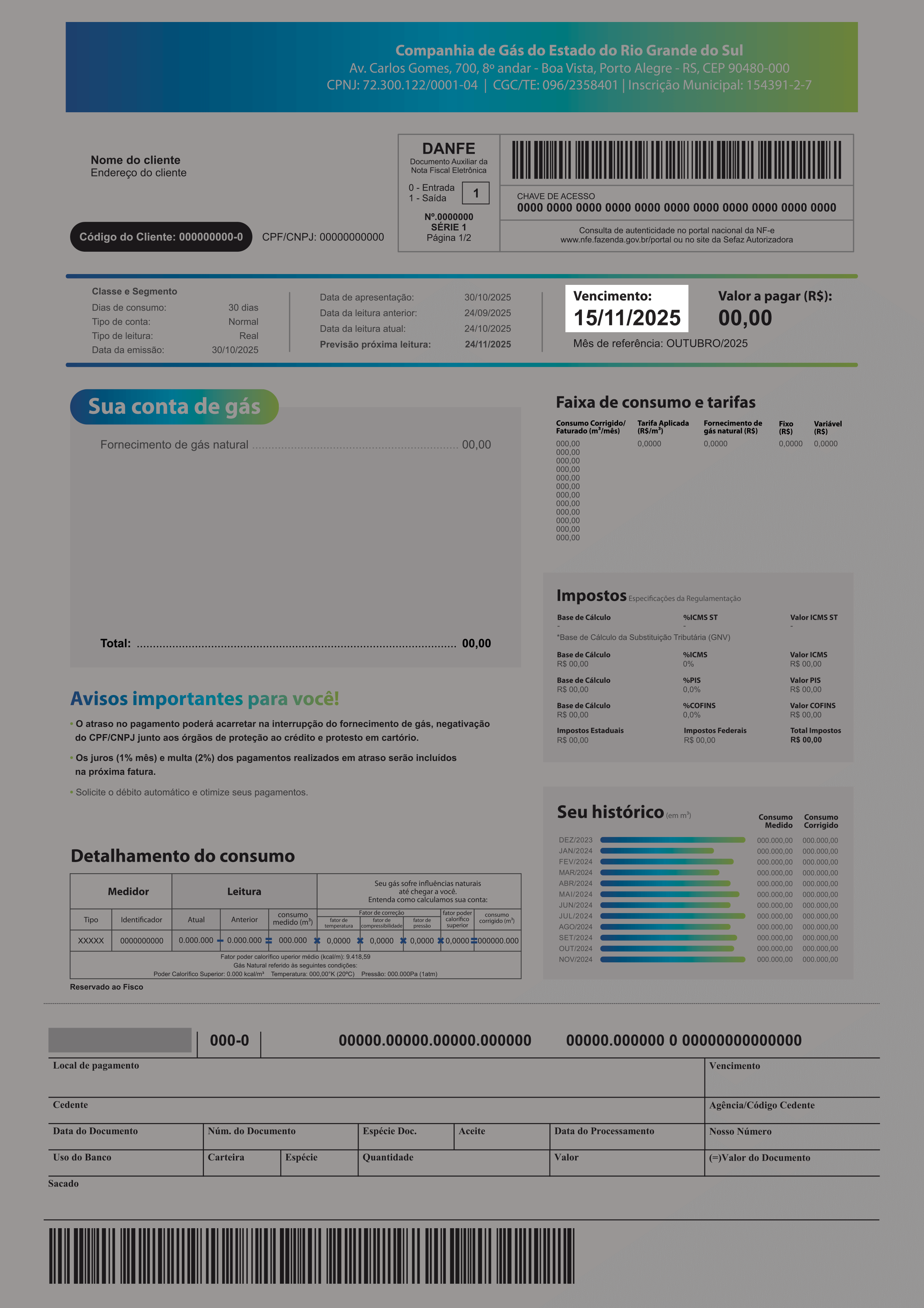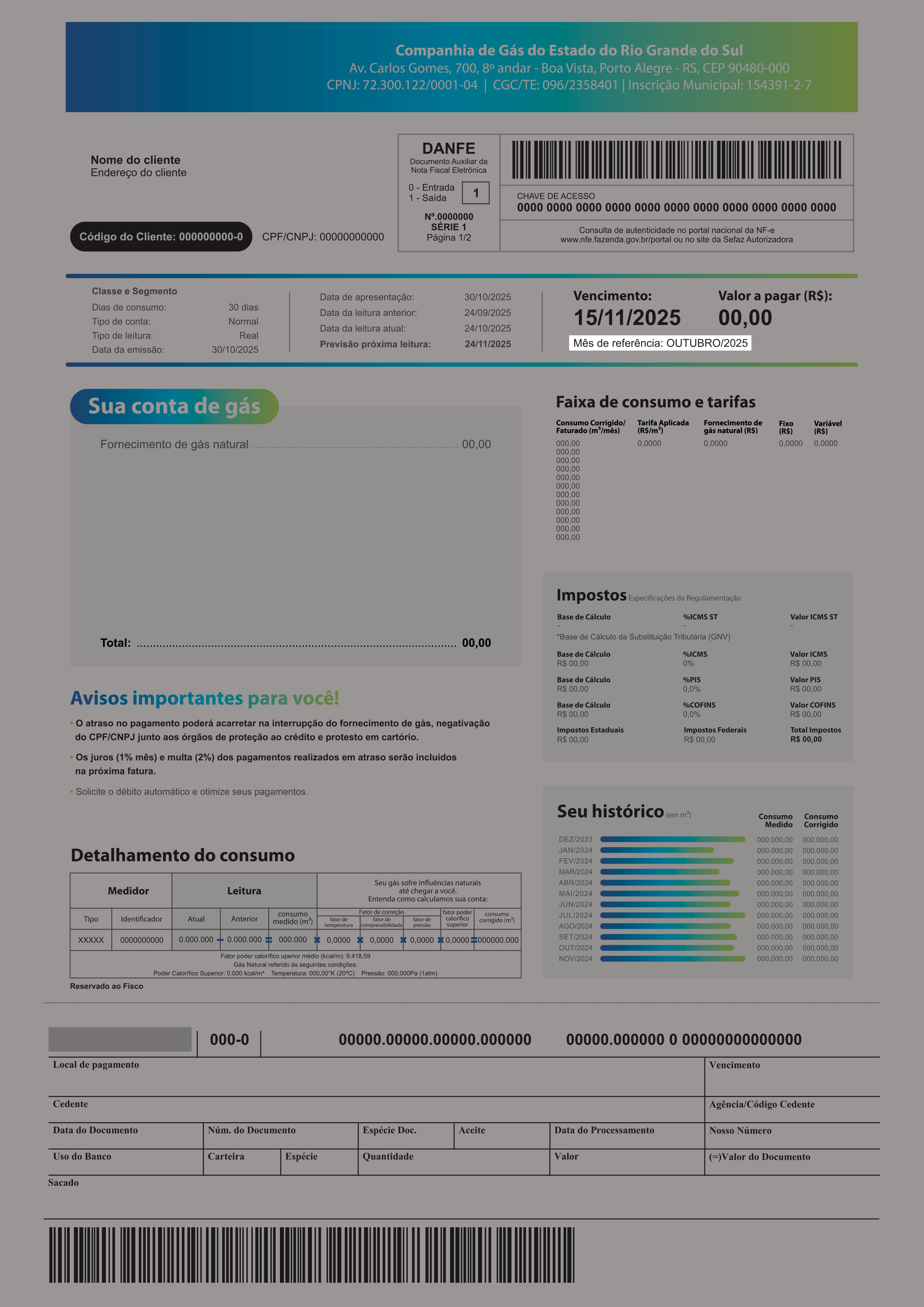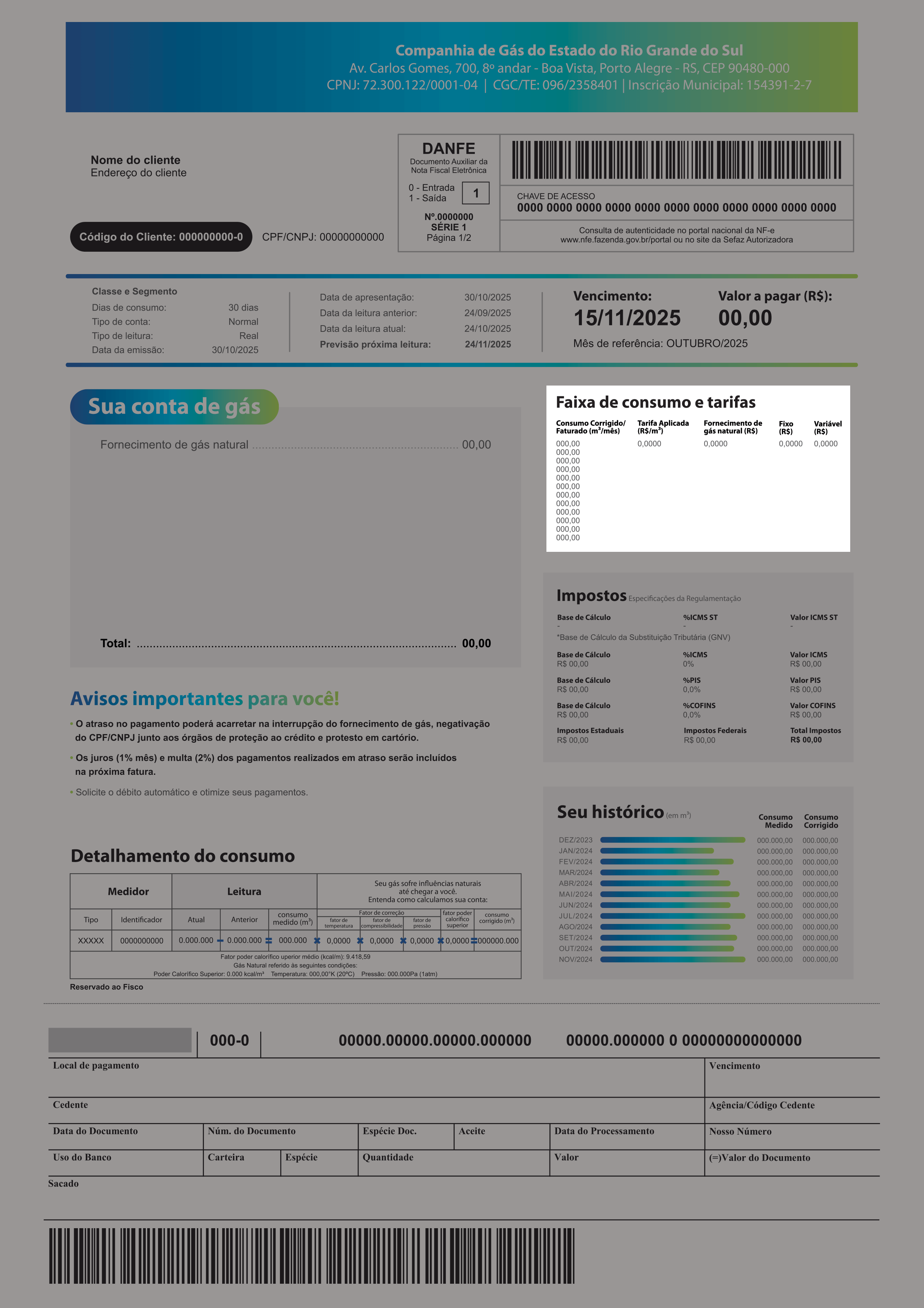 é valor total a ser pago pelo cliente pelo gás consumido no mês.
