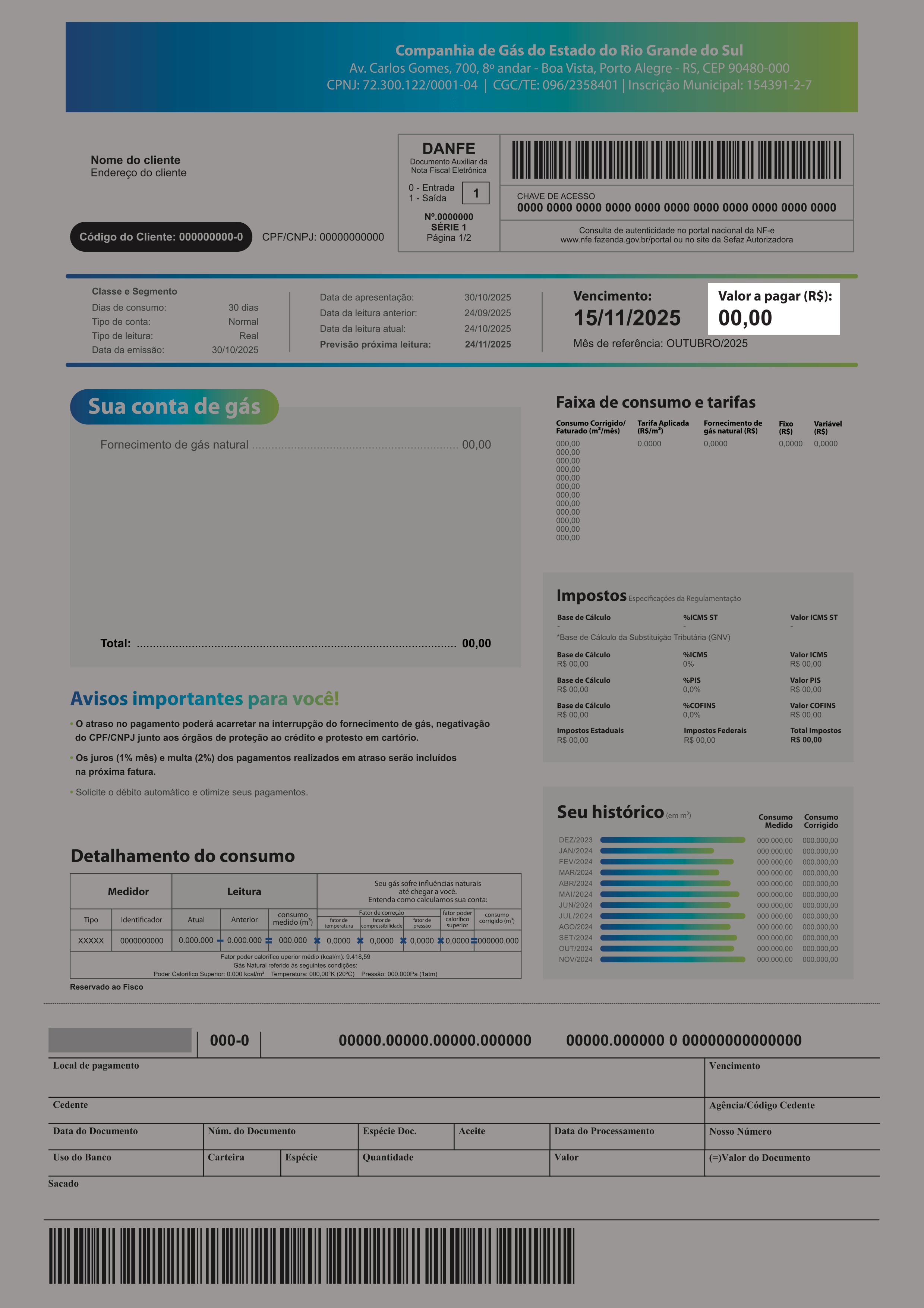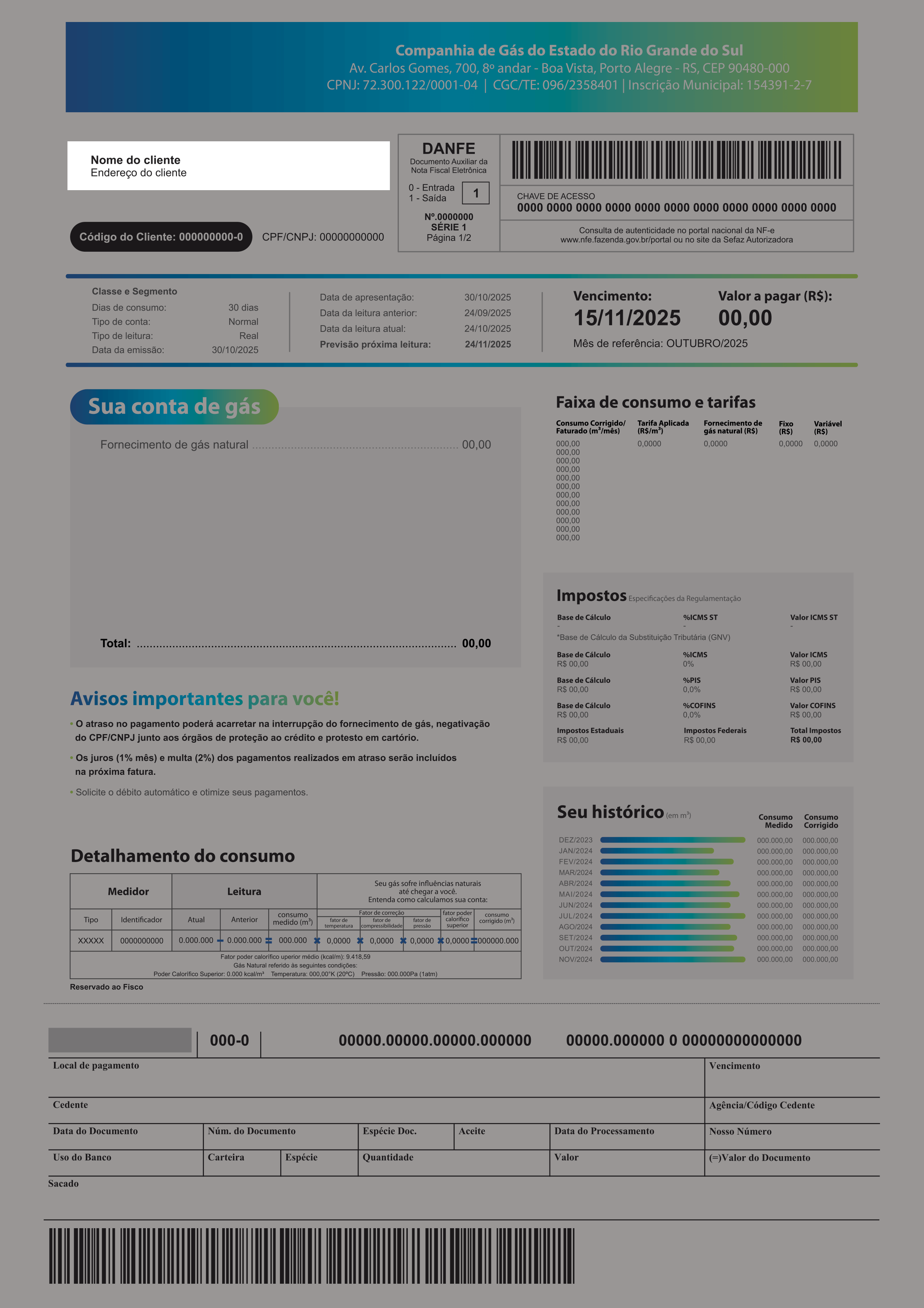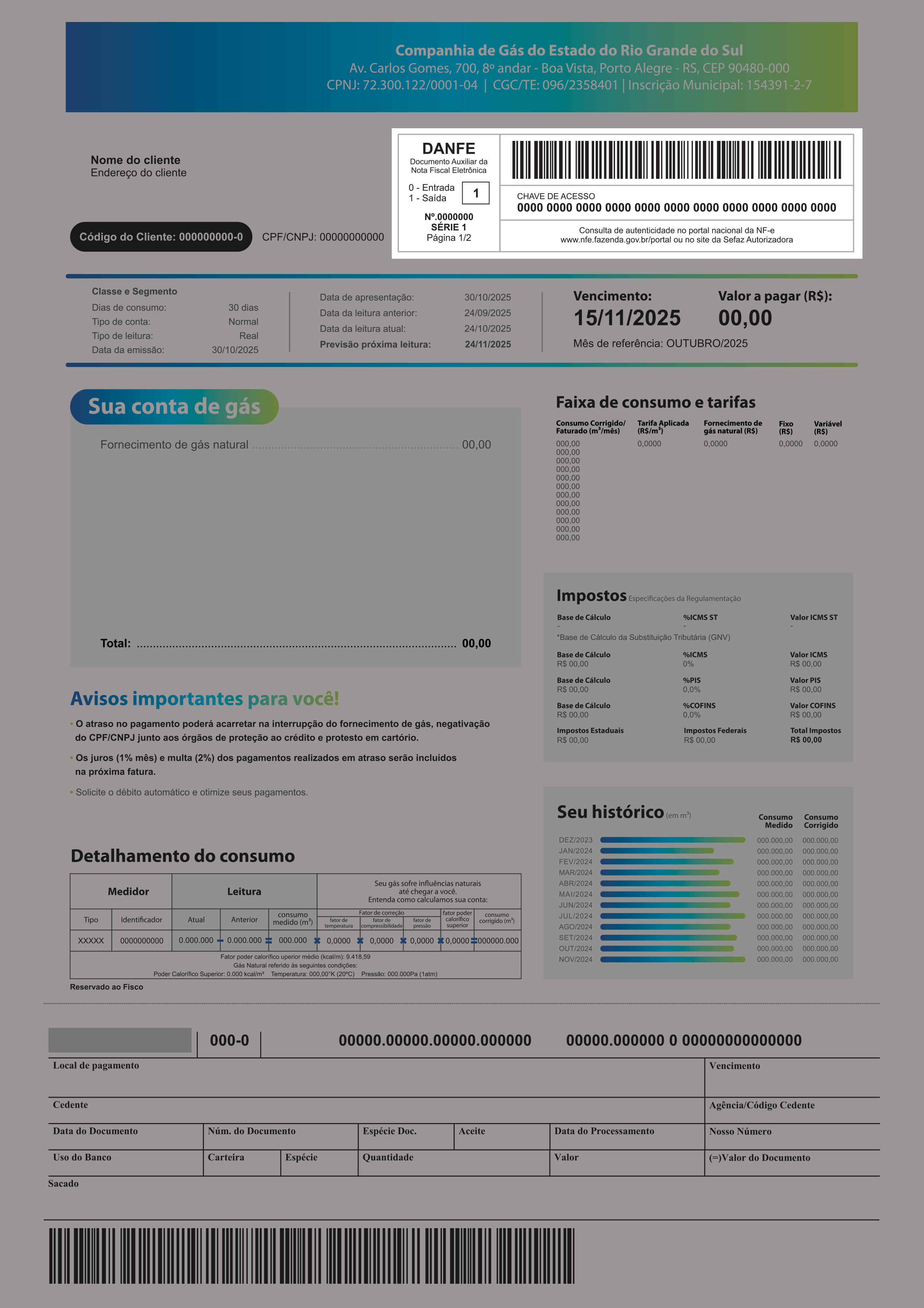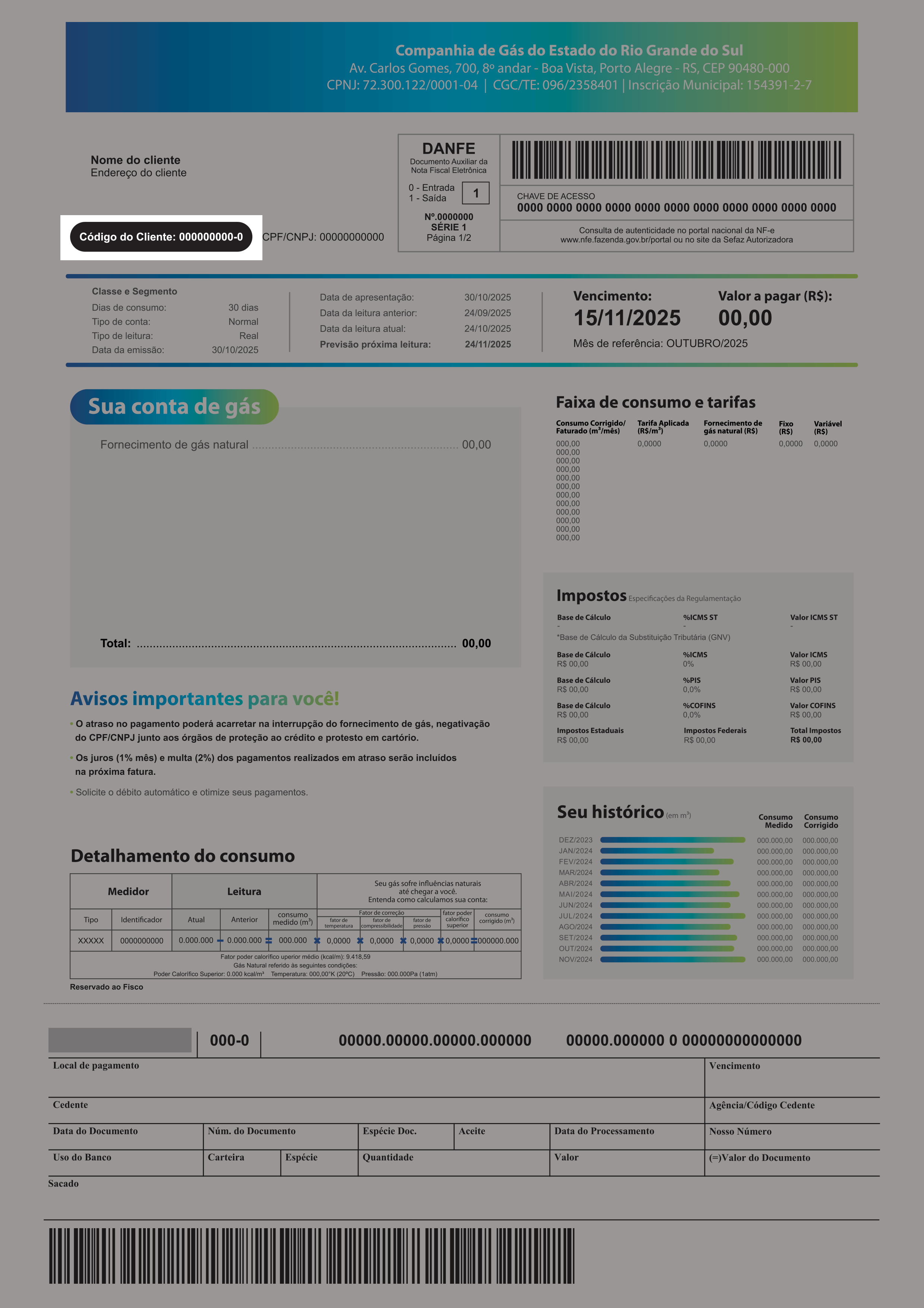 é valor total a ser pago pelo cliente pelo gás consumido no mês.
